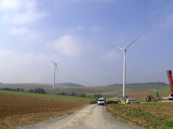 Wenkheim geplanten neun Windkraftanlagen nehmen langsam Gestalt an. Inzwischen